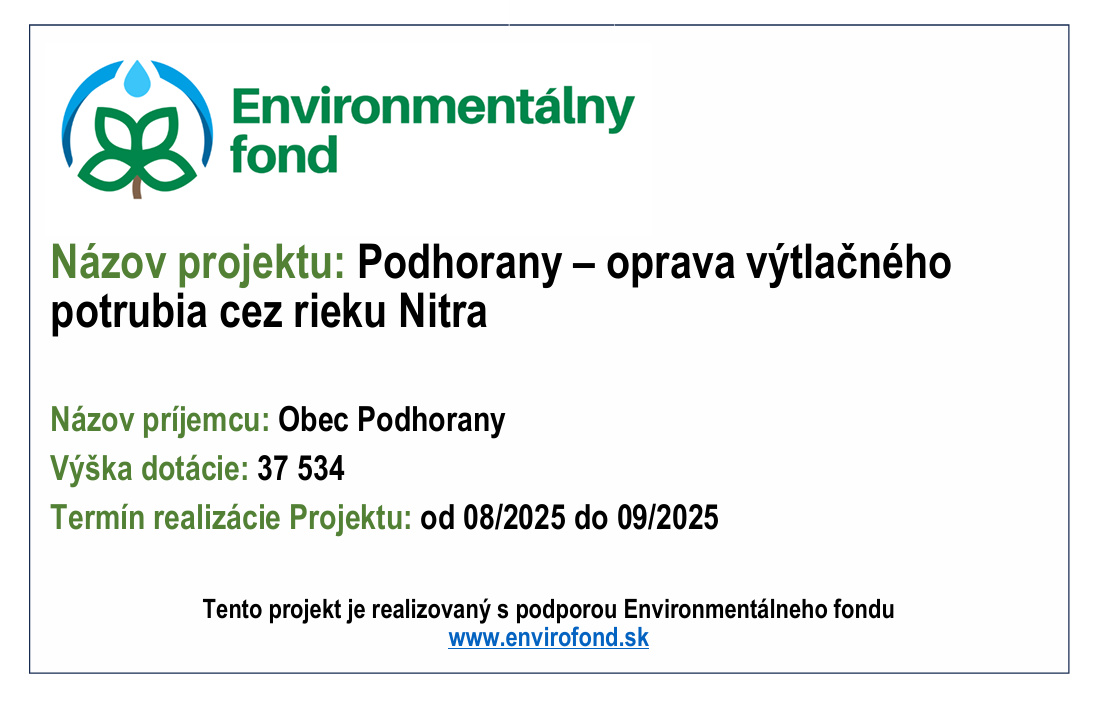 Názov projektu: Podhorany - oprava výtlačného kanalizačného potrubia cez rieku Nitra